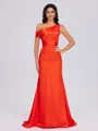 • Sheath One-Shoulder Pleated Sweep Train Silk Like Satin Corset Bridesmaid Dress