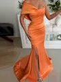 Sheath One-Shoulder Pleated Sweep Train Satin Dress