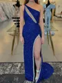 • Sheath One-Shoulder Rhinestone Sweep Train Velvet Sequins Dress