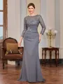 A refined sheath Mother of the Bride dress featuring a scoop neckline and elegant 3/4 sleeves, adorned with delicate applique lace for a touch of timeless charm. Crafted from lightweight chiffon, the floor-length silhouette drapes gracefully for a flattering and comfortable fit. The intricate lace detailing enhances the bodice and sleeves, adding sophistication and romance. Perfect for weddings and formal occasions, this dress offers a classic yet graceful look for the special day.