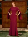 This floor-length stretch crepe mother of the bride dress features a sleek sheath silhouette, accentuated by a classic scoop neckline and elegant long sleeves. Rhinestone embellishments add a touch of sparkle and sophistication to the ensemble. Perfect for a mother who desires a chic and refined look for her daughter's wedding.