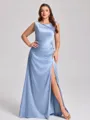 This sheath bridesmaid dress features a classic scoop neckline and sleeveless design for an elegant look. Made from smooth silk-like satin with delicate pleats, it offers a flattering fit and graceful movement. The corset bodice shapes the waist, while the floor-length skirt creates a sophisticated silhouette-perfect for plus size bridal parties.