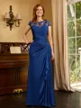 This floor-length mother of the bride dress boasts a sleek sheath silhouette, complemented by a classic scoop neckline and stylish short sleeves. Delicate lace appliques adorn the ensemble, adding a touch of elegance and femininity. Crafted from a combination of satin and chiffon fabrics, it offers both luxury and comfort. Perfect for a mother who desires a chic and sophisticated look for her daughter's wedding.
