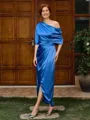 This ankle-length mother of the bride dress boasts a sleek sheath silhouette, complemented by short sleeves for a touch of elegance. Crafted from silk-like satin, it exudes luxury and sophistication. Pleating detail enhances the waistline, creating a flattering and feminine silhouette. Perfect for a mother who seeks a chic and graceful ensemble for her daughter's special day.