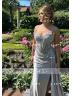 Sheath Spaghetti Straps Appliques Lace Sweep Train Silk Like Satin Corset Porm Dress