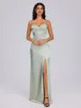 • Sheath/Column Off-the-Shoulder Sweep Train Polyester Bridesmaid Dresses With Leg Slit