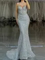 • Sheath Spaghetti Straps Sequin Court Train Corset Dress