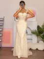 Sleek and sophisticated, this sheath dress features a square neckline, sleeveless design, and exquisite appliques lace. The dress is enhanced with a sweeping train and a lace corset, combining modern style with timeless elegance.