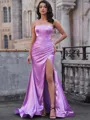 • Sheath Straight Pleated Sweep Train Silk Like Satin Corset Porm Dress