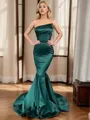 Sheath Straight Pleated Sweep Train Silk Like Satin Dress