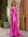 A chic sheath dress featuring straps and a sleeveless design, with a corset bodice that creates a flattering, structured fit. A delicate bow accent adds a touch of charm, while the sweep train enhances the elegant flow of the dress. Ideal for formal occasions or special events.