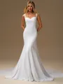 • Sheath Straps Chapel Train Stretch Crepe Wedding Dress