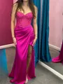 This exquisite sheath dress features a sweetheart neckline and a sleeveless design, creating a flattering and feminine silhouette. Adorned with delicate lace appliques, the dress adds intricate detailing and a romantic touch. Crafted from luxurious silk-like satin, it offers a smooth and lustrous finish, enhancing its sophisticated appeal. The corset-style bodice cinches the waist, accentuating the figure and creating a refined shape. The sweep train adds a graceful and dramatic flair, making this gown perfect for formal events or weddings. Combining lace, satin, and a figure-enhancing design, this dress exudes timeless elegance and modern glamour.