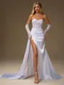 Radiate timeless elegance in this sheath wedding dress, boasting a sweetheart neckline, graceful long sleeves, and intricate lace appliques. Crafted from luxurious elastic woven satin, it features a sweeping chapel train and a flattering corset bodice. Perfect for a bride seeking classic beauty with a touch of romance on her special day.