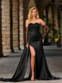 • Sheath Sweetheart Long Sleeves Appliques Lace Court Train Silk Like Satin Porm Dress