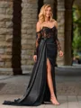 Sheath Sweetheart Long Sleeves Appliques Lace Floor-Length Silk Like Satin Corset Porm Dress