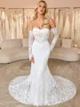 Sheath Sweetheart Long Sleeves Court Train Lace Corset Wedding Dress