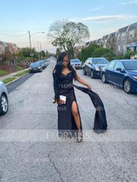 This dress combines elegance with sophistication. With a sweetheart neckline and long sleeves, it exudes timeless charm. Crafted from silk like satin fabric, its sheath silhouette flatters the figure, while delicate pleats add depth. Completed with a graceful sweep train, this dress is perfect for making a statement at any formal event.