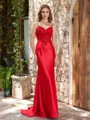 A sophisticated sheath dress with a V-neckline and sleeveless design, featuring intricate lace appliques that add a romantic touch. The corset bodice provides a flattering, structured fit, while the sweep train adds elegance and movement. Perfect for weddings or formal events.