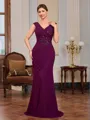 • Sheath V-neck Beading Floor-Length Chiffon Mother of the Bride Dress