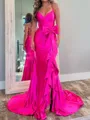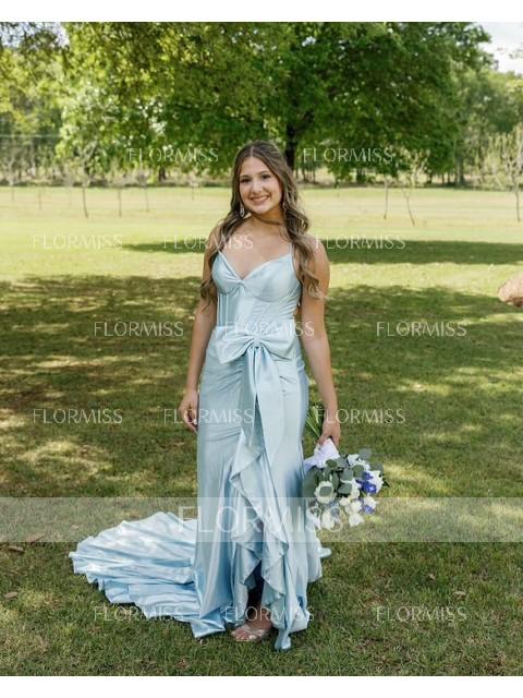 The Sheath V-neck Sleeveless Bow Court Train Corset Dress features a sleek sheath silhouette with a flattering V-neckline and sleeveless design. The corset bodice provides a structured fit, while a dramatic bow at the back and a court train add a touch of elegance and sophistication to this stunning gown.