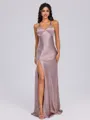 This elegant sheath bridesmaid dress features a flattering V-neckline and a sleeveless design, creating a sophisticated and modern look. Made from silk like satin, it offers a comfortable, figure-hugging fit that drapes gracefully to a floor-length hem. Perfect for weddings and formal events, this dress combines understated elegance with timeless appeal.