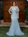 • Sheath V-neck Short Sleeves Sweep Train Mother of the Bride Dress