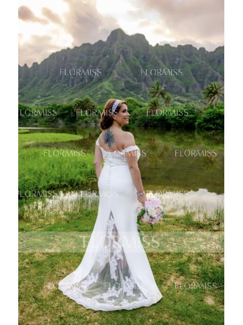 • Trumpet/Mermaid Off-the-Shoulder Sweep Train Stretch Crepe Bridesmaid Dresses With Lace