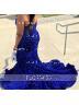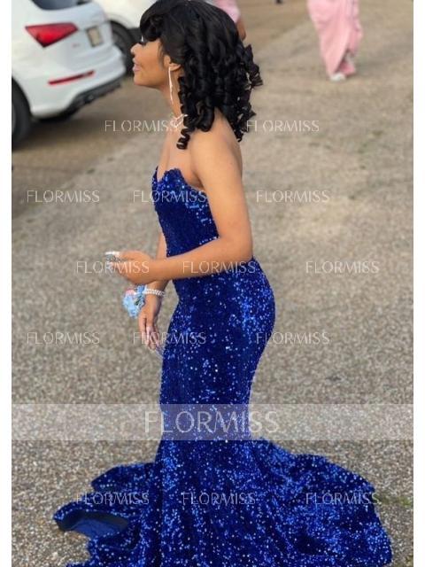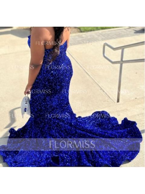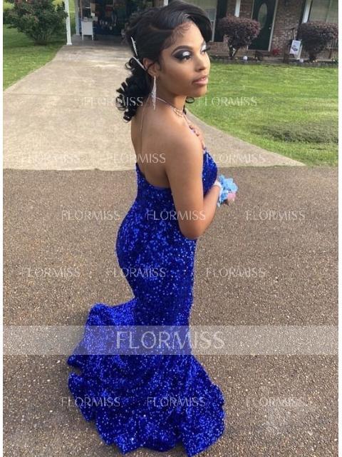 • Trumpet/Mermaid Sweetheart Sweep Train Velvet Sequins Prom Dress With Ruffles