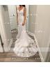Trumpet/Mermaid V-neck Chapel Train Tulle Wedding Dresses With Appliques Lace