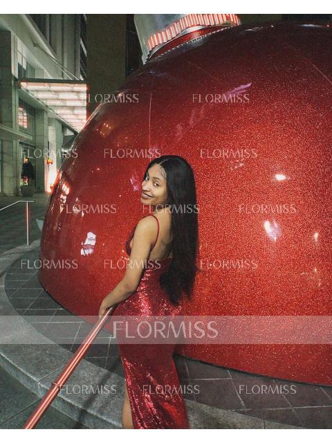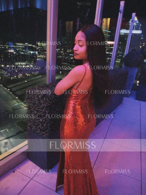 • Trumpet/Mermaid V-neck Court Train Sequins Prom Dress With Leg Slit