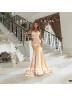 Trumpet/Mermaid V-neck Sweep Train Silk Like Satin Prom Dress