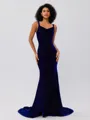 • Trumpet/Mermaid Velvet Ruffles Straps Sleeveless Sweep/Brush Train Bridesmaid Dresses